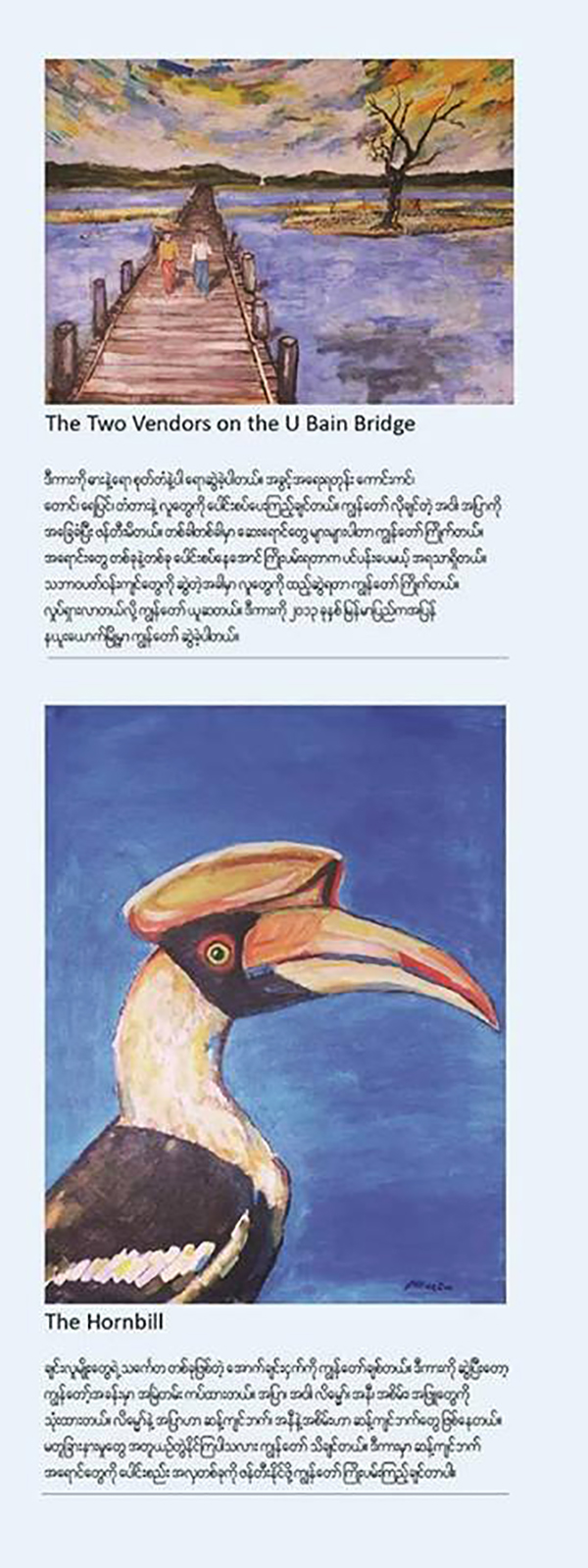 က်ေနာ္အမ်ားႀကီး ဆြဲပါတယ္။ ေတာပန္းေတာင္ပန္းေတြကိုဆြဲတယ္။ ေတာနဲ့ ေတာင္စြယ္စမ္းေခ်ာင္းေတြ ကို ဆြဲတယ္။ တိမ္ေတြကိုဆြဲတယ္။ မိန္းမေတြကို ဆြဲတယ္။ ဒုကၡသည္ေတြကိုဆြဲတယ္။ အေရးေတာ္ပံုႀကီးကိုဆြဲတယ္။ ဆင္းရဲမြဲေတမႈေတြကို ဆြဲတယ္။ ျခစားမႈေတြကိုဆြဲတယ္။ ငရဲသားေတြကိုဆြဲတယ္။ အမ်ားႀကီးအမ်ားႀကီး ဆြဲျဖစ္ခဲ့တယ္။