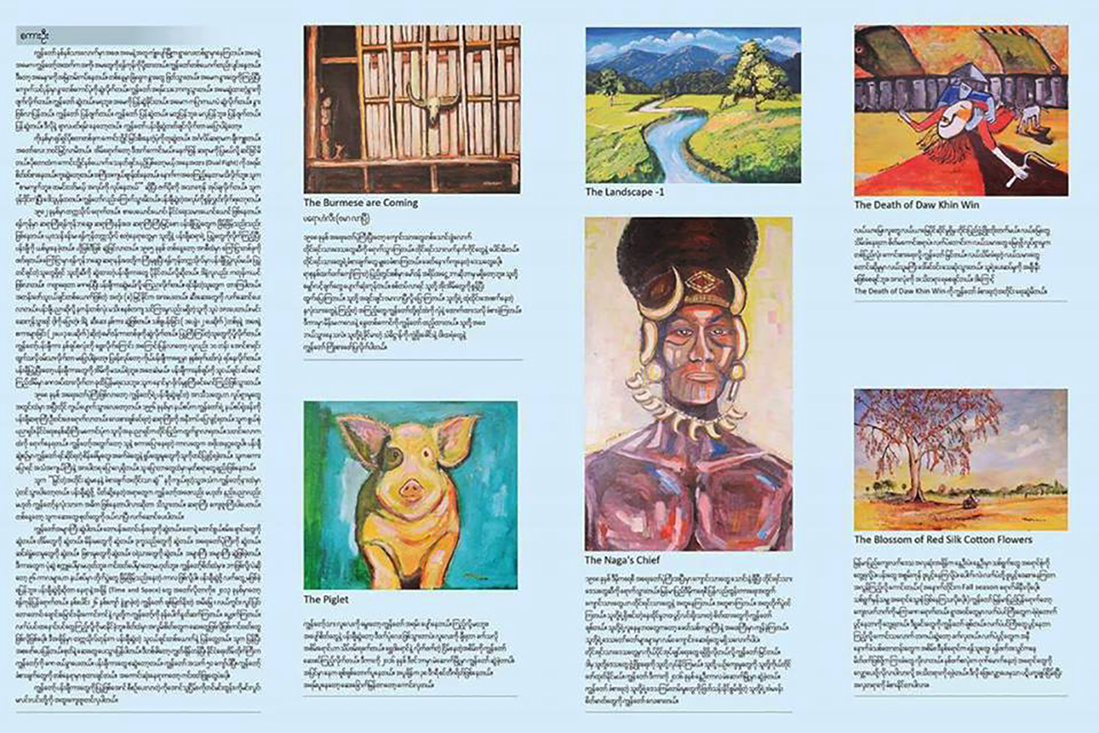 ၁၉၈၅ ခုနစ္ တေန႔ေတာ့ အာစီထဲမွာ ေၾကညာတခုကိုဖတ္ရတယ္။ ေၾကညာမွာ ရန္ကုန္ဘေဆြ၊ ဆရာ နန္းေဝတုိ႔က ႀကီးမွဴးၿပီး ရန္ကုန္တကသိုလ္မွာ ပန္းခ်ီျပပြဲလုပ္မယ္။ ျပပြဲတင္ခ်င္တဲ့သူေတြရိွရင္သူတို႔ဆီကို ဆြဲထားတဲ့ပန္းခ်ီကားေတြ ပို႔ႏိုင္တယ္လုိ႔ဆိုတယ္။ ဒါနဲ့ လူလည္း ကတုန္ကယင္ ျဖစ္လာတယ္။ ကဗ်ာေရးတာ ခဏရပ္ျပီး ပန္းခ်ီကားဆြဲမယ္လုိ႔ ေၾကညာလုိက္တယ္။
