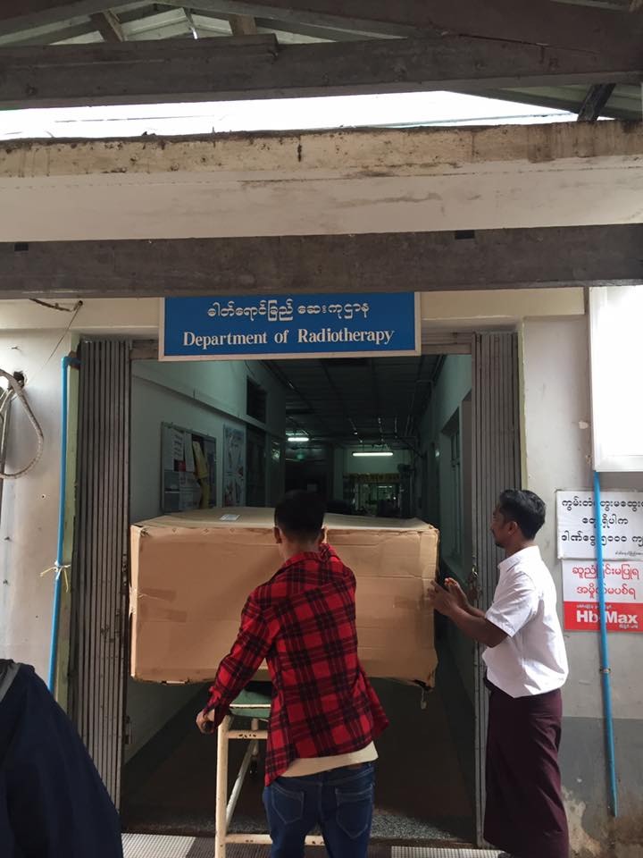 ထုတ္ယူခြင့္ ရျပီးျပီးခ်င္းပဲ ေစတနာရွင္ေတြ စုေပါင္းျပီးေတာ့ ကိုယ္တိုင္ကိုယ္က် ရန္ကုန္ေဆးရုံၾကီးက ဓာတ္ေရာင္ျခည္ ေဆးကုဌာနကို သြားေရာက္ေပးပို႔ တပ္ဆင္ လုပ္အားေပးခဲ့ၾကလို႔ သိရပါတယ္။