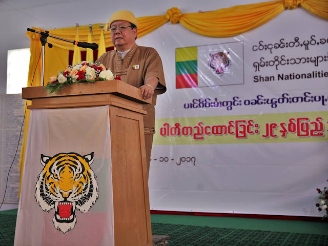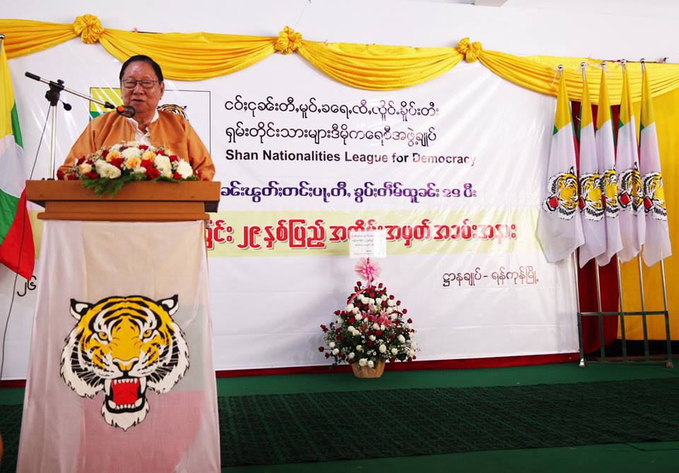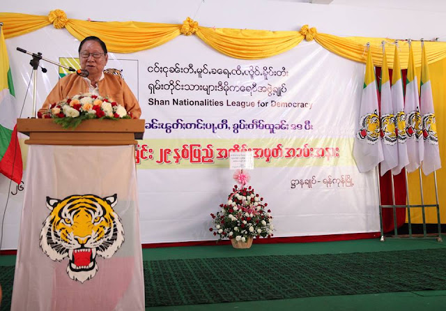 ရွမ္းတိုင္းရင္းသားမ်ား ဒီမုိကေရစီ အဖြဲ႕ခ်ဳပ္ ဖြဲ႕စည္းတည္ေထာင္ျခင္း ၂၉ ႏွစ္ျပည့္ အထိမ္းအမွတ္ အခမ္းအနားကို ေအာက္တိုဘာ ၂၆ ရက္ေန႕က ရန္ကုန္၊ မရမ္းကုန္းျမိဳ႕နယ္ရွိ ေအာင္ေျမဘံုသာသ်ွမ္းေက်ာင္းတြင္ ျပဳလုပ္ခဲ့သည္။ ပါတီ၏ အဂၤလိပ္အမည္မွ ေရွ႕စာလံုးမ်ားကို စုစည္းၿပီ SNLD ဟု ေခၚဆိုၾကသကဲ့သို႔ ပါတီတံဆိပ္ကုိ အစဲြျပဳၿပီး က်ားေခါင္းပါတီဟုလည္း လူသိမ်ားသည္။ (ဓာတ္ပံုမ်ား – ျပည့္ျပည္/Myanmar Now)
