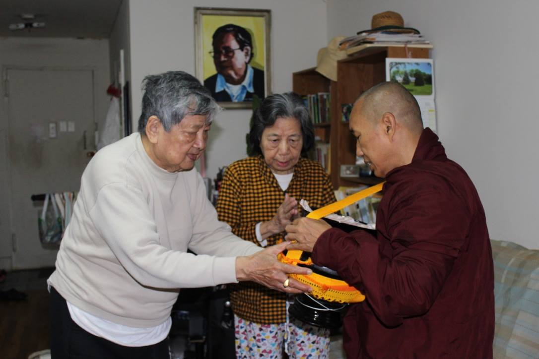 လူနာေမးလာၾကသူေတြထဲမွာ ဘုန္းေတာ္ႀကီးမ်ားလည္ပါ လာၾကပါတယ္။ ဆရာေတာ္တစ္ပါးကေတာ့ ပရိတ္ရြတ္ေပးခ်င္ သတဲ့။ ကြၽန္ေတာ္တုိ႔က ”ဆရာေတာ္ႀကီး ဦးဝိစိတၱရဲ႕ ေမတၱာပုိ႔နဲ႔ ပရိသတ္ႀကီး ကမၼဝါစတာေတြ ေန႔တုိင္းဖြင့္ၿပီး တရားနာေလ့ရွိတာေၾကာင့္ မလိုပါဘူးဘုရား”လို႔ ေလွ်ာက္ထားရပါတယ္။ ကထိန္မလွဴလိုက္ရတဲ့ ေက်ာင္း (မဟာဝိသုဒၶါ႐ုံေက်ာင္း) က သံဃာသုံးပါး ၾကြလာေတာ့ သကၤန္းကပ္လွဴ ကထိန္းခင္းလိုက္ရပါေသးတယ္။ (အဲဒါသုံးပါးေက်ာင္းလို႔လဲေခၚပါတယ္) မဟာေအာင္ေျမေက်ာင္း လို႔ေခၚတဲ့ တစ္ပါးေက်ာင္းကိုေတာ့ လူနာရဲ႕အသက္ ၈ဝ ျပည့္ ကုသုိလ္ျပဳတဲ့အေနနဲ႔ ဝတၴဳေငြ ရွစ္ဆယ္ လွဴလိုက္ပါတယ္။
