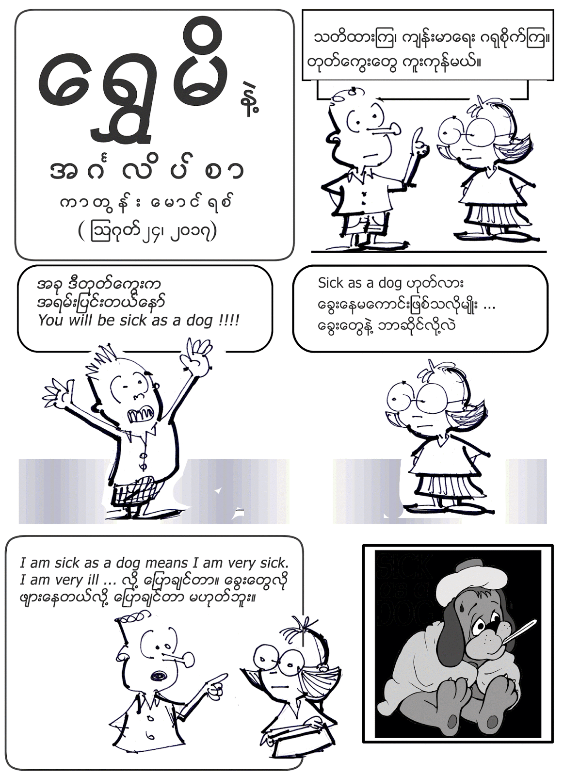 ကာတြန္း ေမာင္ရစ္ – ေရႊမိနဲ႔ အဂၤလိပ္စာ – sick as a dog