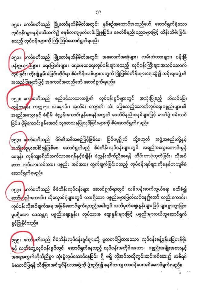 ပုဒ္ပ (၃၂) မွာ “စီးပြားေရး အဖြဲ႕အစည္းမ်ား” ဆိုတဲ့စာသား ျဖဳတ္ျပစ္ရပါမယ္။ (ပူးတြဲပါ ပဥၥမ ဓါတ္ပံု)
