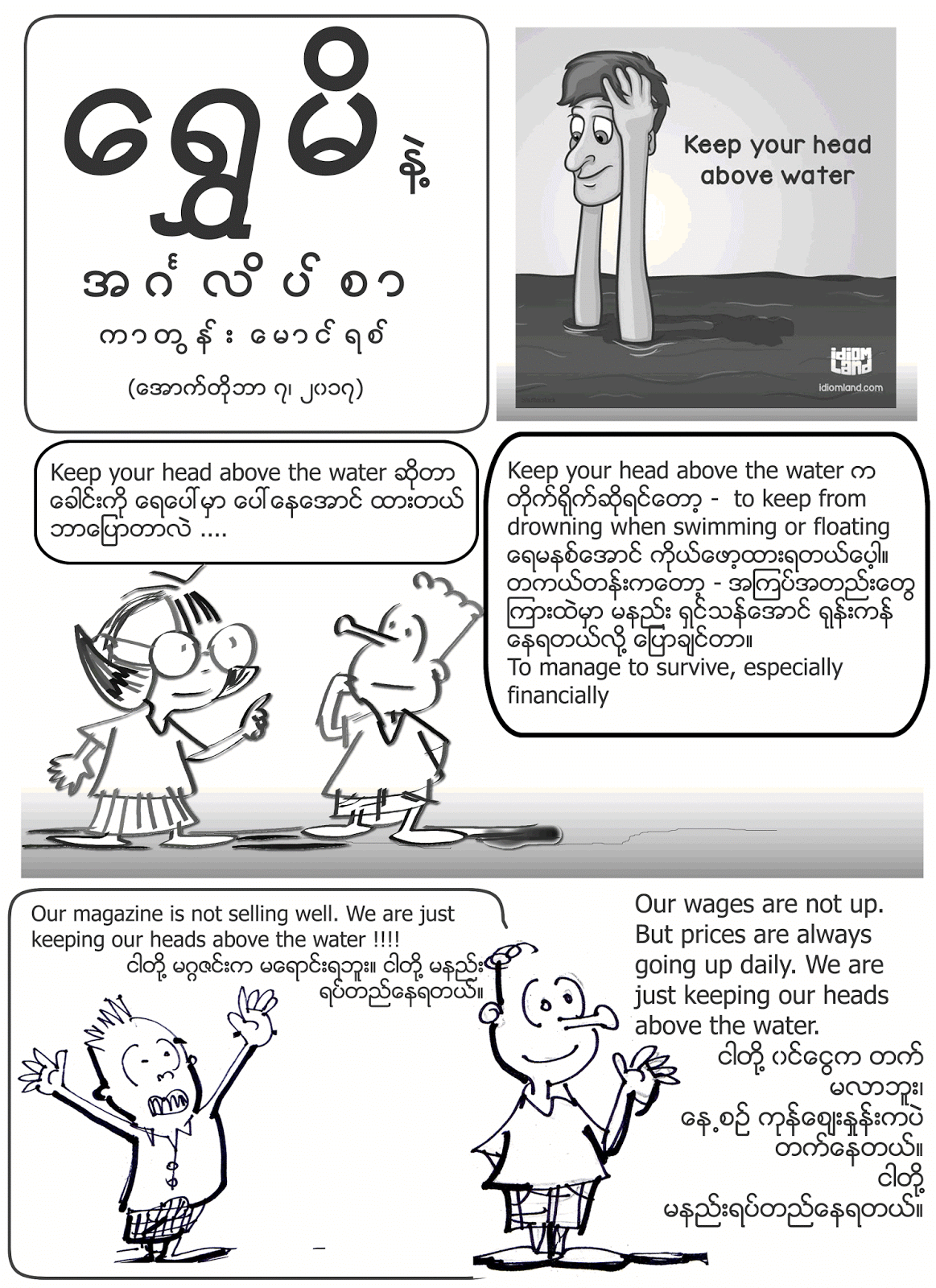 ကာတြန္း ေမာင္ရစ္ – ေရႊမိနဲ႔ အဂၤလိပ္စာ – Keep your head above water