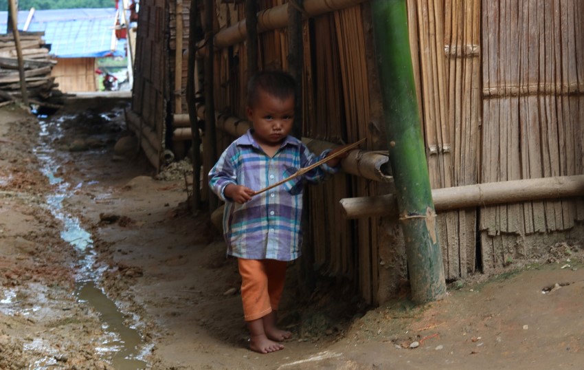 စစ္ေဘးေရွာင္စခန္းအတြင္း အေဖာ္မပါဘဲ ေဆာ့ကစားေနသည့္ လီဆူကေလးငယ္။