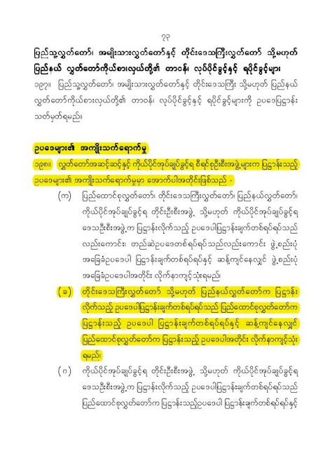 ေျခ/ဥမွ သက္ဆိုင္ရာစာမ်က္နွာမ်ားကိုလည္း အဂၤလိပ္လိုေကာ၊ ျမန္မာလိုပါ ပူးတြဲ ေဖၚျပထားပါသည္။ MCDC အပါအဝင္ စည္ပင္အသီးသီးတို႔က အင္ဂ်င္နီယာ၊ ဗိသုကာမ်ားကို လိုင္စင္မ်ား ဆက္လက္ ထုတ္ေပးေနျခင္းသည္ ဖြဲ႔စည္းပံုအေျခခံဥပေဒနွင့္ မည္သို႔ဆန္႔က်င္ေနေၾကာင္း ေရးထားေသာ ကၽြန္ေတာ္၏ အျခား post မ်ားကို မဖတ္ရေသးသူမ်ားအတြက္ ဤ post ၏ ပထမ comment နွင့္ ဒုတိယ comment တို႔တြင္ရိွေသာ link မ်ားမွတဆင့္ ဖတ္ၾကည့္နိုင္ပါသည္။
