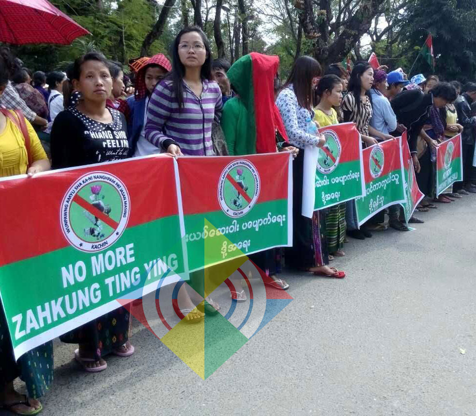 (ဓာတ္ပုံ – ၂၀၁၆၊ ေဖေဖာ္ဝါရီ ၂၆ ရက္ေန႔ ျပည္သူမ်ား လမ္းေလွ်ာက္ဆႏၵျပေနစဥ္၊ http://kachinnewsburmese.blogspot.com )