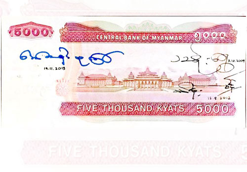 Ex- Senior General Than Shwe’s grandson posted to Facebook a note signed by U Thein Sein, Snr Gen Than Shwe and Daw Aung San Suu Kyi. Photo: Supplied |