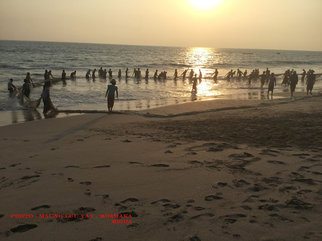 အိမ္ရွင္မေတြက ငါးအုပ္လာမယ္ဆို ေစာေစာထမင္းခ်က္ေကၽြးတယ္။ ေတာမတက္ခ်င္ရင္ သစ္ခုတ္ ဝါးခုပ္မလုပ္ခ်င္ရင္ စိုက္ခင္းမသြားခ်င္ရင္ ငါးဝင္မယ္ေျပာလိုက္႐ုံဘဲ။ ကံဆိုးခ်င္ရင္ ေနာက္ေဖးသြားေနတုန္း ငါးဝင္လာလို႔ ေလွခ်ရာ ကိုယ္မပါလိုက္လို႔ လြတ္သြားရင္ေတာ့ မိန္းမနဲ႔ ရန္ျဖစ္ေပေတာ့ဘဲ။ အဲဒီရက္မ်ိဳးမွ သိန္းခ်ီရေတာ့ ေသၿပီေပါ့ေလ။ ဟိုတုန္းက ပိႆာေထာင္ေက်ာ္ရတယ္။ ေကာက္႐ိုးပိုလို ငါးေတြ ပုံထားရတယ္။ ဒီေသာင္ျပင္ႀကီးေတြနဲ႔တင္ မဆန္႔လို႔ အေဝးႀကီးသြားလွမ္းရတယ္။ ကေလးလူႀကီး အဖိုးႀကီးအဖြားႀကီး တရြာလုံး ပင္လယ္ကမ္းမွာပ။ ငါးေစာင့္ရင္း ကိုယ့္အုပ္စုနဲ႔ကိုယ္ ကိုယ္သန္ရာသန္ရာေျပာ။ ကက္စက္မ်ိဳးစုံဖြင့္။ ေပ်ာ္စရာႀကီးေတြ။