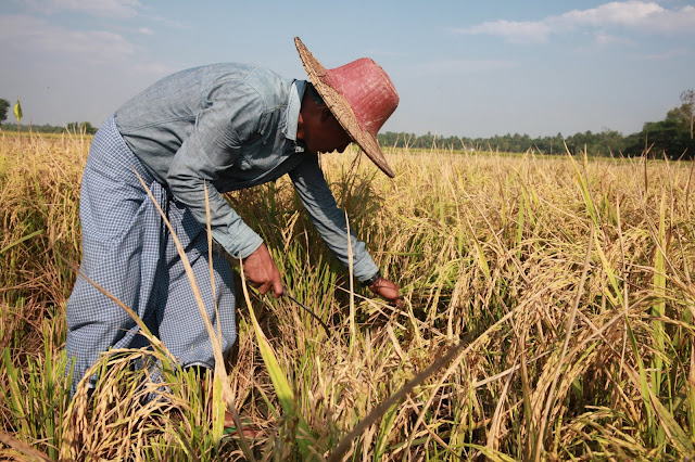 ဘိုကေလး — ဧရာဝတီတိုင္းေဒသႀကီး၊ ဘိုကေလးၿမိဳ႕မွ ေမာ္လၿမိဳင္ကြၽန္းၿမိိဳ႕သုိ႔သြားရာ လမ္းေဘး ဝဲယာတေလွ်ာက္ စပါး ခင္းမ်ားကို မ်က္စိတဆံုး ေတြ႔ျမင္ေနရသည္။ ဘိုကေလး၊ ဂ်ပ္ေခ်ာင္းေက်းရြာသား ဦးဝင္းေဌးက ရိတ္သိမ္းခ်ိန္ နီးကပ္ေနၿပီျဖစ္ သည့္ သူ၏ စပါးခင္းကိုၾကည့္ရင္း ၿပံဳးရႊင္ေနသည္။