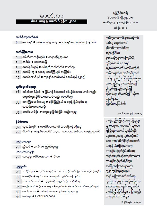 မုိးမခလစဥ္မဂၢဇင္း ဇြန္ ၂၀၁၈ ၊ တြဲ ၅၊ မွတ္ ၂၊ အခ်ိန္မီ ထြက္ပါျပီ
