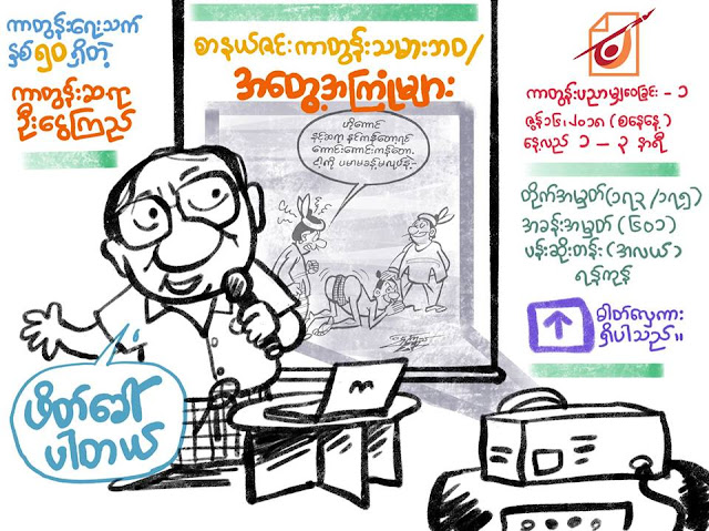 ျမန္မာႏိုင္ငံကာတြန္းဆရာမ်ားအသင္းမွစီစဥ္ေသာ ကာတြန္းပညာမွ်ေဝျခင္းအစီအစဥ္မွာ ကာတြန္းဦးေငြၾကည္ ေဟာေျပာ