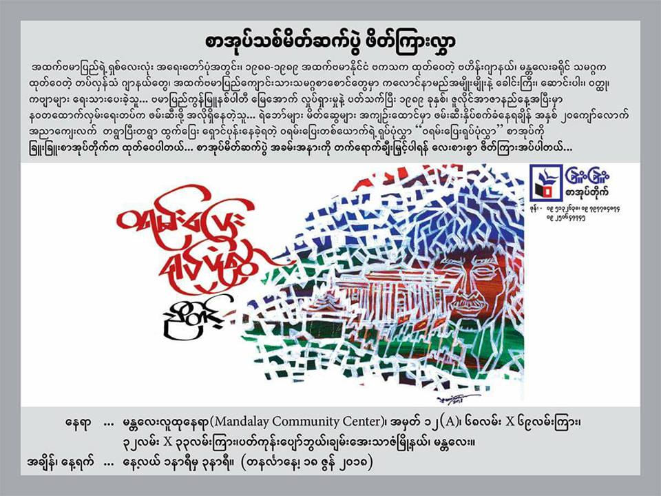 စာေရးဆရာ ညီတင့္ေရးသားတဲ့ စာအုပ္သစ္မိတ္ဆက္ပြဲ မႏၱေလးကြန္ျမဴနတီစင္တာမွာ ျပဳလုပ္