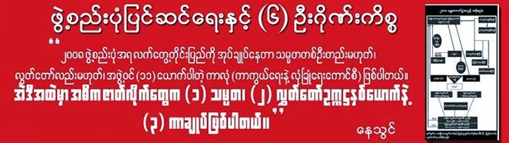 ဦးသိန္းစိန္အစိုးရက အတုိက္ အခံေတြ၊ တုိင္းရင္းသားေတြနဲ႔ ၿငိမ္း ခ်မ္းေရး ေဆြးေႏြးေနတယ္။ ဒါေပ မယ့္ ၂၀၀၈ ဖြဲ႔စည္းပံု ကိုယ္တုိင္က စစ္တပ္ကို ႏုိိင္ငံေရးနဲ႔ စီးပြားေရး အခြင့္ထူးေတြ ေပးထားတဲ့ဖြဲ႔စည္းပုံ ျပည္သူေတြရဲ႕ ဒီမုိကေရစီအခြင့္ အေရးနဲ႔ အသက္ေမြး၀မ္းေက်ာင္းမႈ ေတြကို နည္းမ်ဳိးစံုနဲ႔ သိမ္းပိုက္ထားတဲ့ ဖြဲ႔စည္းပံု၊ တုိင္းရင္းသားေဒသက သဘာ၀အရင္းအျမစ္ေတြကို ေဒသခံ ေတြ ခံစားခြင့္မရေအာင္ ကန္႔သတ္ ထားတဲ့ ဖြဲ႔စည္းပံု ျဖစ္ေနတယ္။ တရားမွ်တျခင္း၊ လြတ္လပ္ျခင္း၊ တန္းတူညီမွ်မႈ၊ ကင္းမဲ့ေနတယ္။