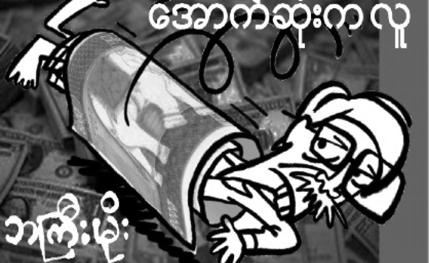 ပီးခဲ့တဲ့ရက္ပိုင္းက ေဒၚလာေဈးေတြ အဆမတန္ျမင့္တက္လာၿပီး တစ္ေဒၚလာ ကို က်ပ္ ၁၃၇၀ ေက်ာ္အထိ တက္ၿပီးခါမွ တန႔္ သြားပါသတဲ့။ ေဒၚလာေဈးတက္ တာ နဲ႔ ဘႀကီးမိုး ဘာဆိုင္သလဲလို႔ မေမးပါနဲ႔။ ဟုတ္တယ္ေလ၊ ဘႀကီးမိုးက စာေရးဆရာ။ ေရးသမွ် စာေရးခေတြ၊ ေဆာင္းပါးခေတြက အားလုံး က်ပ္ေငြနဲ႔ပဲရတာ။ သည္ ေတာ့ ေဒၚလာေဈးတက္တာနဲ႔ ဘာဆိုင္ လို႔လဲလို႔ မေမးပါနဲ႔၊ ေဒၚလာေဈးတက္ ေတာ့ ျမန္မာ က်ပ္ေဈးက က်တယ္ခင္ဗ်၊ ျမန္မာက်ပ္ ေဈး က်ဆင္းလာတဲ့အရွိန္က ေအာက္ဆုံး ကလူျဖစ္တဲ့ ဘႀကီးမိုးအေပၚ ပိေတာ့တာ ေပါ့။ စာမူခ ေဆာင္းပါးခမ်ား က ေတာ့ ဒုံရင္း ဒုံရင္းပဲ။ မတိုးလာတဲ့အျပင္ ေလွ်ာ့ေတာင္ ေလွ်ာ့လိုက္ခ်င္ေသးလို႔ ဆိုတဲ့အခ်ိန္မွာ ကုန္ေဈးႏႈန္းကလည္း ပဲျပဳတ္သည္၊ ကန္စြန္း႐ြက္သည္က ေတာင္ က်ပ္ ၁ဝဝ ဖိုး မေရာင္းေတာ့ဘူး၊ ဘာျဖစ္လို႔လဲဆိုေတာ့ ေဒၚလာေဈးတက္ လို႔ တဲ့၊ ဘယ္က ဘယ္လို ဆက္စပ္မႈ ရွိသ လဲေတာ့ ဘႀကီးမိုးလည္း မသိဘူးခင္ဗ်။ ဒါေပမဲ့ ကုန္ေဈးႏႈန္းတက္တဲ့ ဒဏ္ကို ပိျပားေအာင္ခံေနရတာ ဘႀကီး မိုး ပါပဲ။ ဘႀကီးမိုးခမ်ာလည္း သည္႐ုပ္ခႏၶာ ႀကီး ရွင္သန္ဖို႔အတြက္ အာဟာရျဖစ္ ေအာင္ ျဖည့္တင္းေနရေသးတာကိုး။