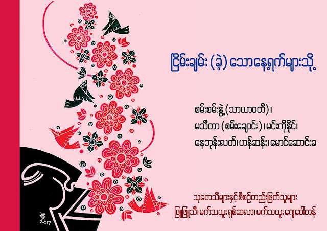 ၿငိမ္းခ်မ္းခဲ့ေသာ ေန႔ရက္မ်ားသို႔ အမည္ရတဲ့စာအုပ္မိတ္ဆက္ပြဲကို ရန္ကုန္ၿမိဳ႕ ရန္ကုန္ၿမိဳ႕လမ္းမေတာ္ၿမိဳ႕နယ္ သံေစ်း ငါး လႊာရွိ Yangon Book Plaza မွာ ဇူလိုင္ ၁၉ရက္ ေန႔လယ္ ၂ နာရီကေန ၅ နာရီထိ ျပဳလုပ္သြားမယ္လို႔သိရပါတယ္။