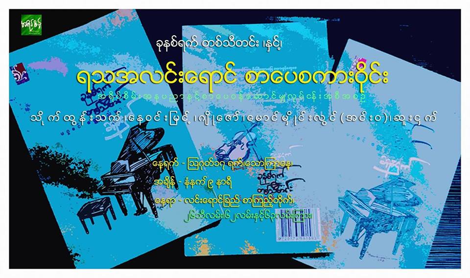 အရိပ္စိမ္းအႏုပညာႏွင့္ စာေပ၀န္ေဆာင္မႈလုပ္ငန္းမွ ဦးစီးက်င္းပတဲ့ ခုနစ္ရက္တစ္သီတင္းႏွင့္ ရသအလင္းအလင္း ေရာင္အမည္ရတဲ့စာေပေဆြးေႏြးပြဲကို မႏၱေလးၿမိဳ႕၂၆Bလမ္း၆၂လမ္း×၆၃ၾကားရွိ လင္းေရာင္ျခည္စာၾကည္တိုက္မွာ ၾသဂုတ္လ ၁၇ရက္ နံနက္၉နာရီအခ်ိန္ က်င္းပျပဳလုပ္မယ္လို႔သိရပါတယ္။