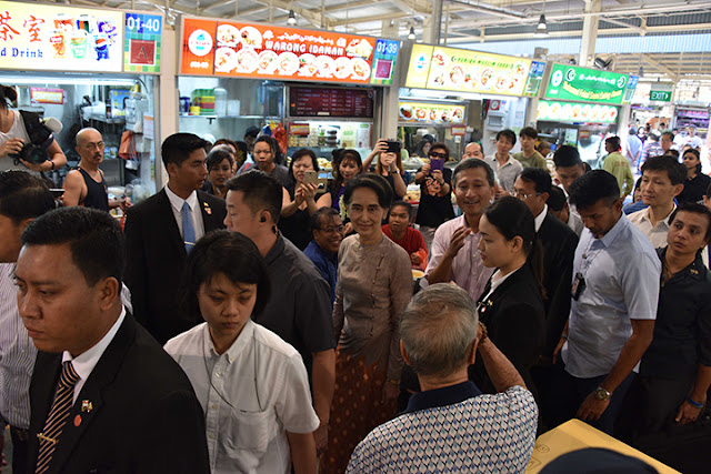 မၾကာေသးမီက ႏိုင္ငံေတာ္အတုိင္ပင္ခံပုဂၢိဳလ္ ေဒၚေအာင္ဆန္းစုၾကည္သည္ စင္ကာပူဝန္ႀကီးခ်ဳပ္ လီရွန္လြန္း၏ဖိတ္ၾကားခ်က္အရ စင္ငကာပူႏိုင္ငံသို႔ ၾသဂုတ္ ၁၉ ရက္ေန႕မွ ၂၂ ရက္ေန႔အထိ ေလးရက္ၾကာသြားေရာက္ခဲ့သည္။ ထိုခရီးစဉ္အတြင္း ၾသဂုတ္လ ၂၁ ရက္ေန႔တြင္ Grand Hyatt ဟိုတယ္၌ ျပဳလုပ္သည့္ ၄၃ ႀကိမ္ေျမာက္ Singapore Lecture ေဟာေျပာပြဲတြင္ “ျမန္မာႏုိင္ငံဒီမုိကေရစီ အသြင္ကူးေျပာင္းေရး စိန္ေခၚခ်က္မ်ားႏွင့္ ေရွ႕ဆက္ရမည့္ခရီး” ဟူေသာ ေခါင္းစဥ္ျဖင့္ ေဒၚေအာင္ဆန္းစုၾကည္ ေဟာခြင့္ရခဲ့သည္။ ၎အခြင့္အေရးကို ေတာ္ရုံတန္ရုံ ေခါင္းေဆာင္မ်ားအားေပးေလ့မရွိဟု ဆိုသည္။ ေဒၚေအာင္ဆန္းစုၾကည္ေရွ႕တြင္ ေဟာေျပာခြင့္ ရရွိခဲ့ၾကသူမ်ား၏စာရင္းကို ၾကည့္လွ်င္ သိႏိုင္သည္။ Singapore Lecture ေဟာေျပာပြဲ ၃၃ ႀကိမ္ေျမာက္တြင္ ဂ်ပန္၀န္ႀကီးခ်ဳပ္ ရွင္ဇိုအာေဘး (Shinzo Abe)၊ ၃၆ ႀကိမ္တြင္ တရုတ္ သမၼတ ရွီက်င့္ပင္(Xi Jinping)၊ ၃၇ ႀကိမ္တြင္ အိႏၵိယဝန္ႀကီးခ်ဳပ္ ရွရီနာရင္ဒရာ မိုဒီ (Shri Narendra Modi)၊ ၃၈ ႀကိမ္တြင္ ဗီယက္နမ္သမၼတ ထရန္ဒိုင္က်ဴယင္ (Tran Dai Quan)၊ ၃၉ ႀကိမ္တြင္ နယ္သာလန္ဝန္ႀကီးခ်ဳပ္ မတ္ရတ္ေတ (Mark Rutte)၊ အႀကိမ္ ၄၀ ေျမာက္တြင္ ျပင္သစ္သမၼတဖရန္စစ္ေဟာ္လန္ဒီ(François Hollande)၊ ၄၁ ႀကိမ္တြင္ တူရကီဝန္ႀကီးခ်ဳပ္ ဘင္အလီ ယီလ္ဒင္ (Binali Yıldırım)၊ ႏွင့္ ၄၂ ႀကိမ္ေျမာက္တြင္ ေတာင္ကိုရီးယားသမၼတ မြန္ေဂ်အင္ (Moon Jae-in) အစရွိသည္ျဖင့္ ေဟာေျပာခဲ့ၾကသည္ကို ေတြ႔ႏိုင္ သည္။ တနည္းအားျဖင့္ Singapore Lecture စင္ျမင့္သည္ ႏိုင္ငံေရးအေျခအေနမ်ားအေပၚတည္မွီ၍ ႏိုင္ငံတကာအား ရွင္းလင္းေျပာဆိုခြင့္ေပးသည့္ ထူးျခားအေရးပါေသာ ေနရာတခုဟု ဆိုႏိုင္သည္။ ထိုအခြင့္အေရးကို ႏိုင္ငံေတာ္အတုိင္ပင္ခံပုဂၢိဳလ္က ထိထိေရာက္ေရာက္အသုံးခ်ကာ၊ လက္ရွိ ျမန္မာႏိုင္ငံ၏ ပကတိအေျခအေနမ်ားကို ကမၻာကသိရွိနားလည္လာေအာင္ ေျပာဆိုရွင္းျပႏိုင္ခဲ့သည္။