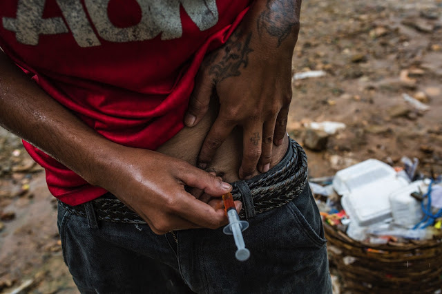 ဆိုင္းေတာင္ၿမိဳ႕ လမ္းမတစ္ေနရာတြင္ ဘိန္းျဖဴ ထိုးသြင္းေနသူ