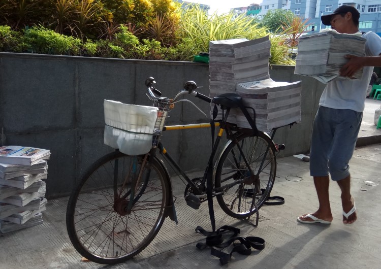 ရန္ကုန္ၿမိဳ႕မွ သတင္းစာ၊ ဂ်ာနယ္ အေရာင္းေစ်းကြက္မွ ျဖန္႔ေဝသူတစ္ဦး (ဓာတ္ပံု – ဇာနည္ဝင္း/Myanmar Now)