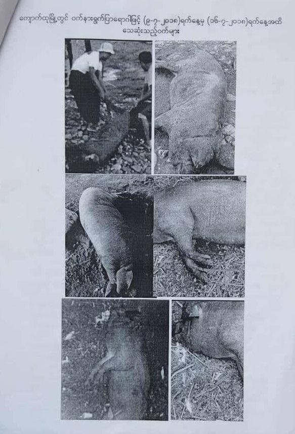“ကားၾကပ္လို႔ေသတယ္ ဆိုၿပီး တစ္ခါတည္းေပၚၿပီး ရြာထဲ လူလႊတ္ေရာင္းခိုင္းတာပဲ။ ရြာထဲေရာင္းၿပီး ေနာက္ေန႔ပဲ ရြာထဲက ဝက္ေတြ အစာမစားေတာ့ဘူး။ ေနာက္ေန႔က်ေတာ့ အကုန္ေသၾကေတာ့တာ” ဟု ဆိုသည္။