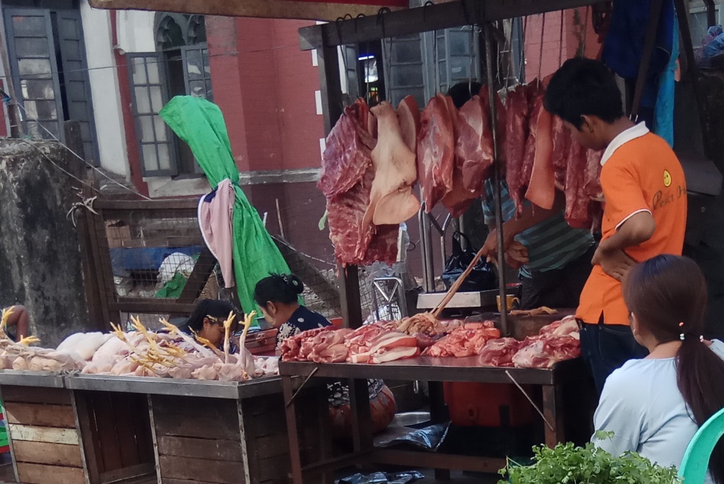 ရန္ကုန္ေစ်းကြက္ရိွ အသား အေရာင္းဆိုင္တခ်ဳိ႕ (ဓာတ္ပံု – Myanmar Now)