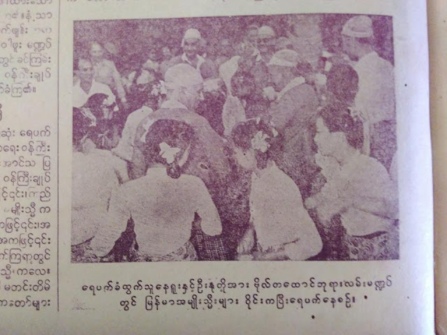 ေဖၚျပပံုသည္ ၁၉၅၅ ခု၊ ဧၿပီလ ရန္ကုန္ၿမိဳ႕၏ သမိုင္းဟု ကၽြန္ေတာ့္ Essay အရဆိုရပါမည္။ မည္သည့္ သတင္းစာမွန္းမသိ၊ ေသခ်ာသည္က အစိုးရသတင္းစာမဟုတ္။ ထိုေခတ္က အစိုးရသတင္းစာရယ္လို႔မွ မရွိဘဲကိုး။