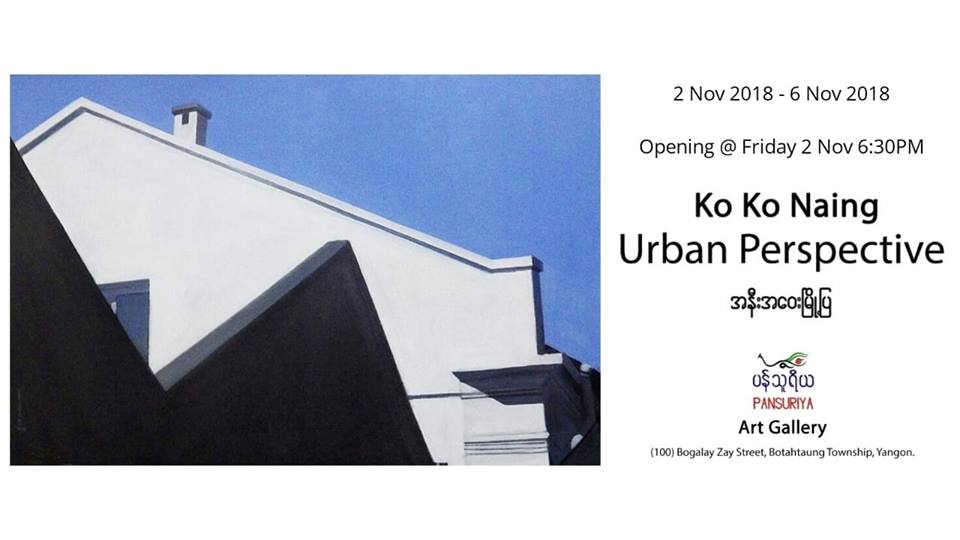 Urban Perspective (အနီးအေ၀းၿမိဳ႕ျပ) လို႔အမည္ေပးထားတဲ့ ပန္းခ်ီဆရာ ကိုကိုႏိုင္ရဲ႕တကိုယ္ေတာ္ပန္းခ်ီျပပြဲကို ရန္ကုန္ၿမိဳ႕ဗိုလ္တေထာင္ၿမိဳ႕နယ္ဘိုကေလးေစ်းလမ္း၊ အမွတ္ ၁၀၀ရွိ ပန္သူရိယ အႏုပညာျပခန္းမွာ ႏို၀င္ဘာ ၂ရက္မွ ၆ရက္ထိျပသသြားမယ္လို႔သိရပါတယ္။