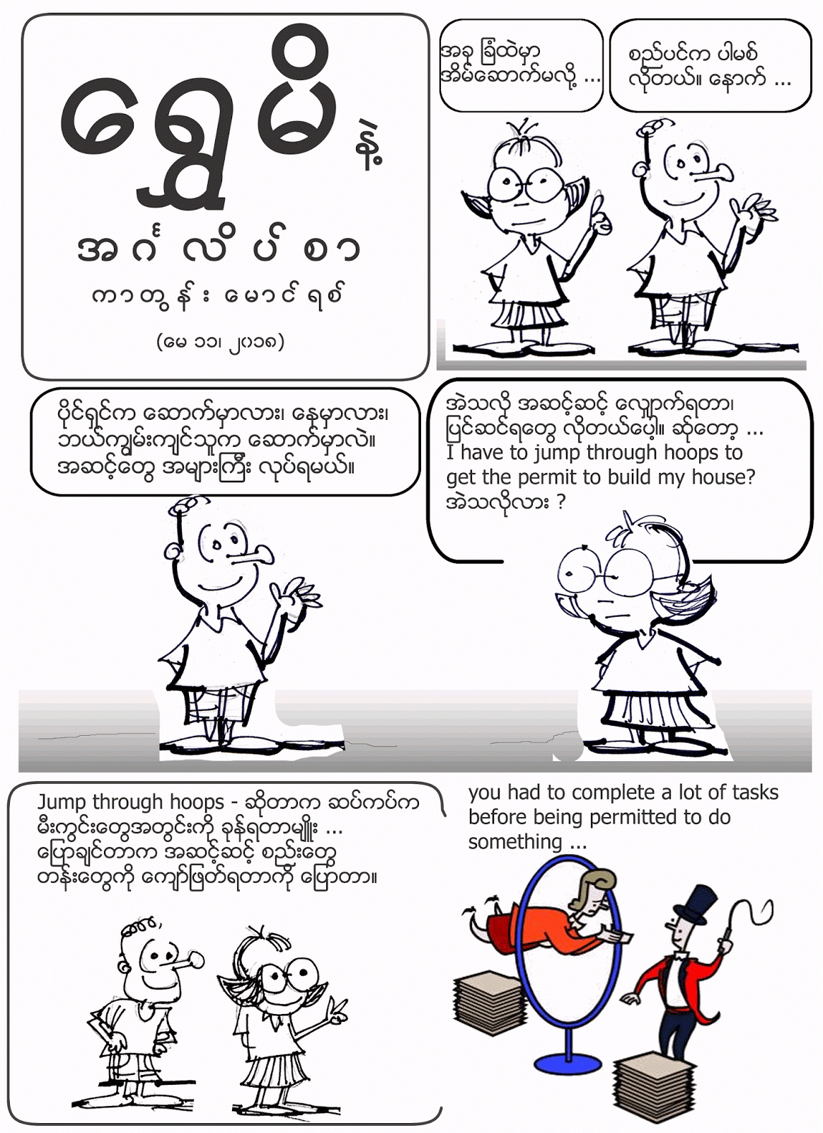 ကာတြန္း ေမာင္ရစ္ – ေရႊမိန႔ဲ အဂၤလိပ္စာ – Jump through hoops