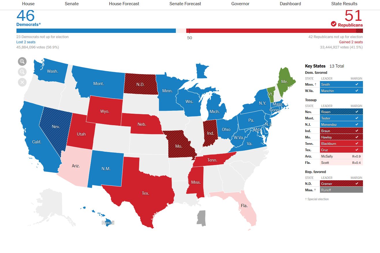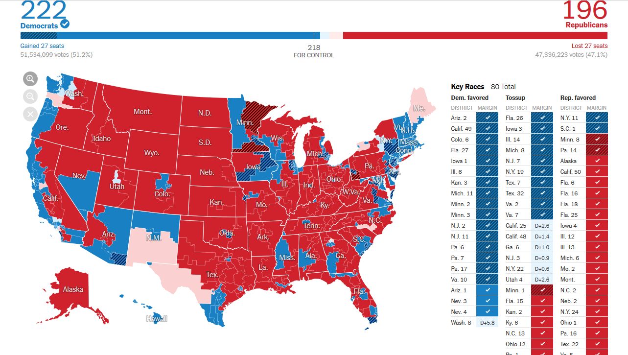 Mid Term Election လို႔ေခၚတဲ့ အေမရိကန္က ၾကားျဖတ္ေခၚေခၚ ၾကားကာလေခၚေခၚ အမတ္ေရြးေကာက္ပြဲၾကီး ကို ႏို၀င္ဘာ ၆ က က်င္းပျပီးစီးျပီးေနာက္ ႏို၀င္ဘာ ၇ မွာ ရလဒ္မ်ား ထြက္လာပါျပီ။ ေဒၚနယ္ထရန္႔ သမၼတအျဖစ္ ဦးေဆာင္မႈေပးေနတဲ့ ရီပတ္ဘလစ္ကန္ပါတီက အထက္လႊတ္ေတာ္မွာ အႏိုင္ရျပီး၊ အတိုက္အခံလႊတ္ေတာ္ လူနည္းစုေခါင္းေဆာင္ နန္စီပလိုစီ ဦးေဆာင္မႈေပးေနတဲ့ ဒီမိုကရက္တစ္ပါတီက ေအာက္လႊတ္ေတာ္မွာ လူအင္အားအမ်ားစုနဲ႔ အႏိုင္ရၾကပါတယ္။