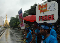 “ၿငိမ္းခ်မ္းေရး” ဆိုတဲ့ စကားလံုးေလးသည္ လူသားတို႔၏စိတ္ကို ၾကည္ႏူးေပ်ာ္႐ႊင္ေစသည့္ စကား ေလးတစ္ခြန္း ျဖစ္ေပသည္။ အမိျမန္မာႏုိင္ငံေတာ္ႀကီး အပါအဝင္ ကမၻာ့ႏုိင္ငံအသီးသီးတိုင္း “ၿငိမ္းခ်မ္းေရး” ဆိုသည့္အရာအား ေမွ်ာ္လင့္ေတာင္းတေနၿပီး လိုအပ္လွသည့္ အရာေလးတစ္ခု ျဖစ္လို႔ေနပါသည္။ ကမၻာအႏွံ႔ အျပားတြင္ မၿငိမ္းခ်မ္းျခင္းမ်ား ႐ွိေနသည့္အတြက္ လူသားတိုင္းအေနျဖင့္ အုတ္တခ်ပ္ သဲတပြင့္အေနျဖင့္ လူသားတိုင္းတို႔ ၿငိမ္းခ်မ္းေရး ဆုေတာင္းပြဲမ်ားအား လုပ္ေဆာင္ခ်င္ၾကပါသည္။ ၂၁.၉.၂ဝ၁၃ အျပည္ျပည္ဆိုင္ရာ ၿငိမ္းခ်မ္း ေရးေန႔ရက္တြင္ နာေရးကူညီမႈအသင္း(ရန္ကုန္) ဥကၠ႒ ဦးေက်ာ္သူ၊ အလုပ္အမႈေဆာင္မ်ား၊ အသင္းသား/ သူမ်ား၊ ဝန္ထမ္းမ်ားတုိ႔ တတ္စြမ္းသေ႐ြ႕ ပါဝင္ ကူညီ လႈပ္႐ွားေဆာင္ရြက္ခဲ့သည္။