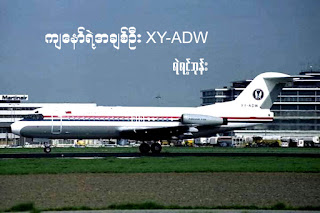 ကြၽန္ေတာ္တို႔စီးရမယ့္ေလယာဥ္က XY-ADW ပါ။ ခပ္လွမ္းလွမ္းမွာ ရပ္နား ထားပါတယ္။ ေလယာဥ္က ငါးႏွစ္သားပဲရိွေသးလို႔ အသစ္လို႔ေျပာလို႔ရနိုင္တဲ့အေျခအေနပါ။