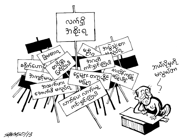 အျမန္လမ္းမၾကီးေပၚ ညၾကီးေမာင္းတဲ့ ကားေပၚလိုက္လာရင္း ၀ဲယာ ေမွာင္ ပိန္းလို့။ လမ္းမီးတိုင္ မရွိ။ ဆိုင္ကယ္မစီးရဘူးလို့ ကန့္သတ္ထားတယ္ ၾကားေပမယ့္ အျမန္လမ္းမၾကီးေပၚ ဆိုင္ကယ္ေတြ တ၀ီး၀ီး။ သက္ဆိုင္ရာပုဂၢိဳလ္ေတြလည္း ျမင္မွာပါ။ မင္းေနျပည္ေတာ္နဲ႔ ခဲတပစ္အကြာမွာပဲ ဥပေဒကို ေပၚေပၚတင္တင္ၾကီး ခ်ိဳးေဖါက္ေနမွေတာ့…။ တိုင္းျပည္တျပည္ ၾကီးပြါး ခ်မ္းသာသြားတယ္ ဆိုတာ တကယ့္လက္ေတြ့အရွိတရားကို ရဲရဲျကည့္ လက္ေတြ့့က်က် စဥ္းစားေတြးေခၚမွ ျဖစ္တာပါ။ ဟန္ေရး ၀ါေရး ျပလိုက္၊ စိတ္ကူးေလးယဥ္လိုက္ ၊ ေလျကီးမိုးျကီး ပစ္လိုက္နဲ႔ေတာ့ ဘာမွျဖစ္လာမွာ မဟုတ္ဘူးဆိုတာေလာက္ေတာ့ က်ြန္ေတာ္တို့ သိသင့္ျပီ။ ။