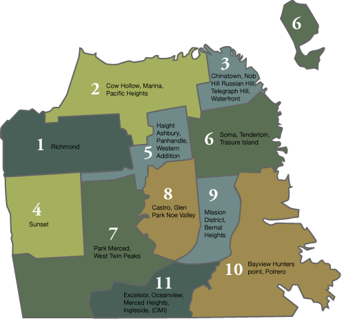 ၿမိဳ႕ေတာ္အုပ္ခ်ဳပ္ေရးအတြက္ ရပ္ကြက္ေခါင္းေဆာင္ အုပ္ခ်ဳပ္ေရးမႉး (၁၁)ဦးကို ရပ္ကြက္အလိုက္ ေရြးခ်ယ္တင္ေျမာက္ရၿပီး ထိုသူမ်ားကို Board is Supervisors မ်ားဟုေခၚသည္။ ၿမိဳ႕၏ ေကာင္စီဝင္မ်ားလည္းျဖစ္သည္။ သူတို႔တာဝန္မွာ ဥပေဒျပဳေရးႏွင့္ ရသံုးေငြစာရင္းျပဳစုႏိုင္ေရးျဖစ္သည္။ ထိုအဖြဲ႕တြင္ ဥကၠဌတစ္ဦးေရြးခ်ယ္ကာ ေခါင္းေဆာင္ရသည္။ ရပ္ကြက္မ်ားကို District ဟုသတ္မွတ္ထားၿပီး တစ္မွ ဆယ့္တစ္အထိရွိသည္။ သူတို႔၏ သက္တန္းမွာလည္း ေလးႏွစ္ျဖစ္၏။ သက္တန္းကန္႔သတ္ခ်က္မရွိ။