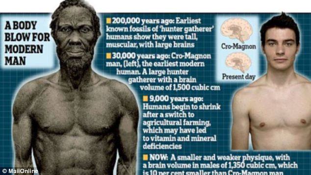 ရွာေဖြစားေသာက္တဲ့ေခတ္ေနာက္ပုိင္းမွာ ေဆပီယန္စ္တုိ႔ရဲ႕ ဦးေႏွာက္အရြယ္အစား တကယ္ပဲေသးငယ္လာတယ္ဆုိတဲ့ အေထာက္အထားအခ်ိဳ႕ကိုေတြ႕ရပါတယ္။ အဲဒီေခတ္မ်ာ အသက္ရွင္သန္ဖုိ႔အတြက္ လူတိုင္းမွာ စူပါစိတ္စြမ္းအားေတြရွိဖုိ႔ လုိအပ္ခဲ့တယ္။ စုိက္ပ်ိဳးေရးႏွင့္စက္မႈထုတ္လုပ္မႈေတြရွိလာတဲ့အခါ လူေတြဟာ အသက္ရွင္ကန္ဖုိ႔အတြက္ တျခားသူေတြရဲ႕ ကၽြမ္းက်င္မႈအေပၚ အရင္ကထက္ပုိၿပီး မွီခိုလာၾကတယ္။ အဲဒါေၾကာင့္ ‘တံုးအၿပီး ဉာဏ္မရွိသူေတြအတြက္လည္း ေနရာသစ္ေတြ’ ပြင့္လာခဲ့တယ္။ လူတစ္ေယာက္အေနနဲ႔ ရိုးရုိးေရထမ္းသမား ဒါမွမဟုတ္ ရုိးရုိးစက္ရံုအလုပ္သမားအျဖစ္ လုပ္ကုိင္ရွင္သန္ၿပီး ဘာစြမ္းရည္ထူးျခားမႈမွမရွိတဲ့ သူ႔ရဲ႕မ်ိဳးရုိးဗီဇကုိ ေနာက္မ်ိဳးဆက္တစ္ဆက္တစ္ခုကို လက္ဆင့္ကမ္းေပးလုိ႔ ရလာပါတယ္။