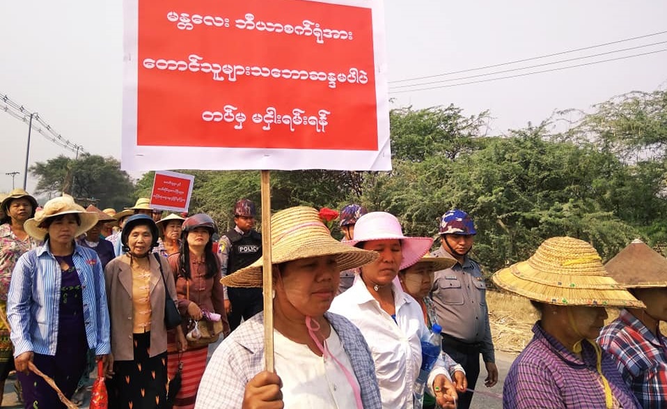 ဆန္ဒပြသူတို့သည် “တောင်သူများပိုင် လယ်မြေများ ပြန်လည်စိုက်ပျိုးခွင့်