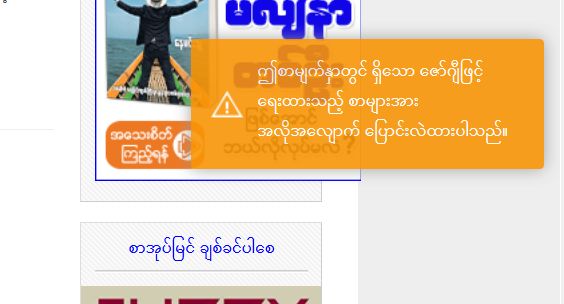 မိုးမခဝက်ဆိုက်ကကော ဘယ်လဲ ဘာလဲ။ ဆရာမောင်ရစ်၏ အမိန့်အရ ယူနီကုဒ်နဲ့ပဲ စာမူတွေ တင်ရတော့မှာပါ။ ဝက်ဆိုက်ဆက်တင်တွေလည်း ဇော်ဂျီကို ဖြုတ်ချထားရမှာ ဖြစ်ပါတယ်။ ဝက်ဆိုက်အဟောင်းကိုတော့ သည်အတိုင်းပဲ ဆက်သိမ်းဆည်းထားပါမယ်။ စာမူအသစ်တွေကိုတော့ ယူနီကုဒ်တွေနဲ့ပဲ တင်ပါတော့မယ်။ စာမူတွေကတော့ ဘာနဲ့လာလာ http://www.myanmarengineer.org/converter/fontconv.htm ဘားမိစ်ဖွန့်ကွန်ဗာတာနဲ့ ပြောင်းပြီးတော့ ဖတ်ယူ တင်ယူပါမယ်။ စာရေးဆရာများ ဘာမှ ပူစရာမလိုပါ။
