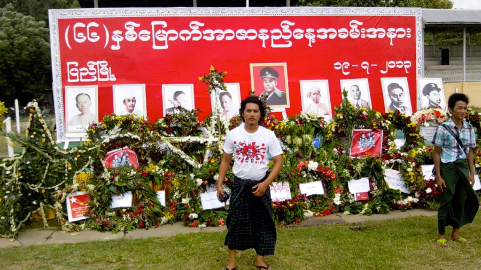 အစိုးရသတ္မွတ္ထားသာ ျမိဳ႕သစ္အားကစားကြင္းတြင္ ပန္းၾကယ္ခ်ကာ အေလးျပဳခဲ့သည္႔