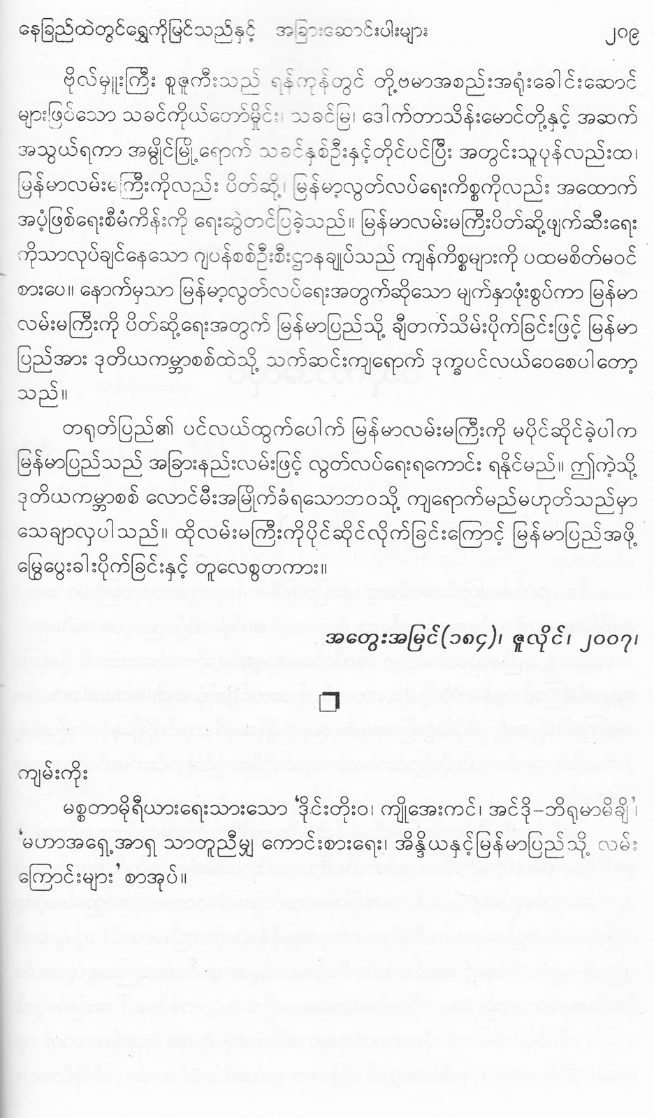 စိတ္ကူးခ်ိဳခ်ိဳ အႏုပညာမွ ၂၀၀၈ ဒီဇင္ဘာလ က ပထမအၾကိမ္ ထုတ္ေ၀ခဲ့သည့္ ေနျခည္ထဲတြင္ ေရႊကိုျမင္သည္ ႏွင့္ အျခားေဆာင္းပါးမ်ား စာအုပ္၏ စာမ်က္ႏွာ ၂၀၃ – ၂၀၉ မွ ကူးယူတင္ျပထားပါသည္။