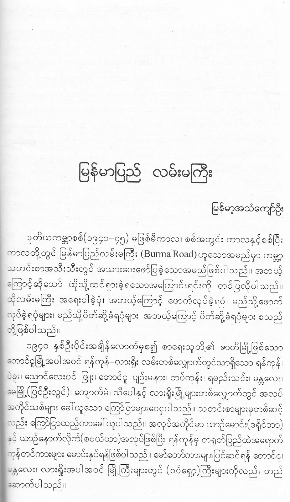 ျမန္မာ့အသံ ေက်ာ္ဦး ၊ ျမန္မာျပည္ လမ္းမၾကီး