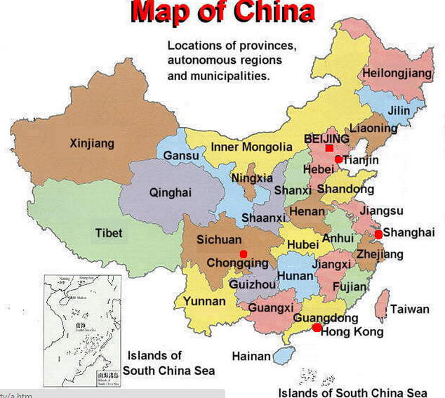 တ႐ုုတ္္ျပည္အေၾကာင္း ေအာက္ေဖၚျပပါ ေျမပံုျဖင့္ အစျပဳေလ့လာရမည္ျဖစ္သည္။ မည္သည့္ပစၥည္းသည္ တ႐ုုတ္္ျပည္ မည္သည့္ျမိဳ႔တြင္ အေျမာက္အမ်ားထုတ္လုပ္ၾကသနည္း…ဆိုသည္မွာ လုပ္ရင္းကိုင္ရင္း ၾကြမ္းက်င္၊ သိရွိသြားမည္ျဖစ္ပါသည္။ အခ်ိန္ရလွ်င္ အေမရိကန္မွ တပတ္ရစ္စက္ပစၥည္းမ်ား ျမန္မာျပည္သို႔တင္ပို႔ေရး၊ တပတ္ရစ္ လွ်ပ္စစ္ဓါတ္အားေပးစက္ရံုငယ္မ်ား၊ စားေသာက္ကုန္စက္ရံုကေလးမ်ား ေစ်းႏႈန္းခ်ိဳသာစြာဝယ္ျပီး၊ ျမန္မာႏိုင္ငံသို႔တင္ပို႔ျခင္းကို ေရးသားလိုပါသည္။