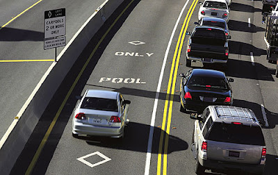မတတ္သာလို ့သြားရရင္လဲ ကားတစီးလူတေယာက္ထက္ ၂ေယာက္၃ေယာက္ ၿဖစ္ေစခ်င္တယ္။ ဒါေႀကာင့္ ကိုယ့္အလုပ္မွာ အိမ္နီးခ်င္း ဒါမွမဟုတ္ ကိုယ္သြားမဲ ့ လမ္းေႀကာင္းနဲ ့အဆင္သင့္ရင္ တပါတည္း ေပါင္းသြားဖို ့အားေပးပါတယ္။ အဲလို လုပ္သူေတြကို အားေပးတဲ ့အေနနဲ ့ သူတို ့အတြက္ လမ္းေႀကာ (Car Pool Lane) သတ္သတ္ ထားေပးၿပီး ၂ေယာက္နဲ ့အထက္ ပါတဲ ့ ကားေတြကို သာ ရံုးအဆင္းအတက္ အခ်ိန္သတ္မွတ္ၿပီး ေပးေမာင္း ပါတယ္။