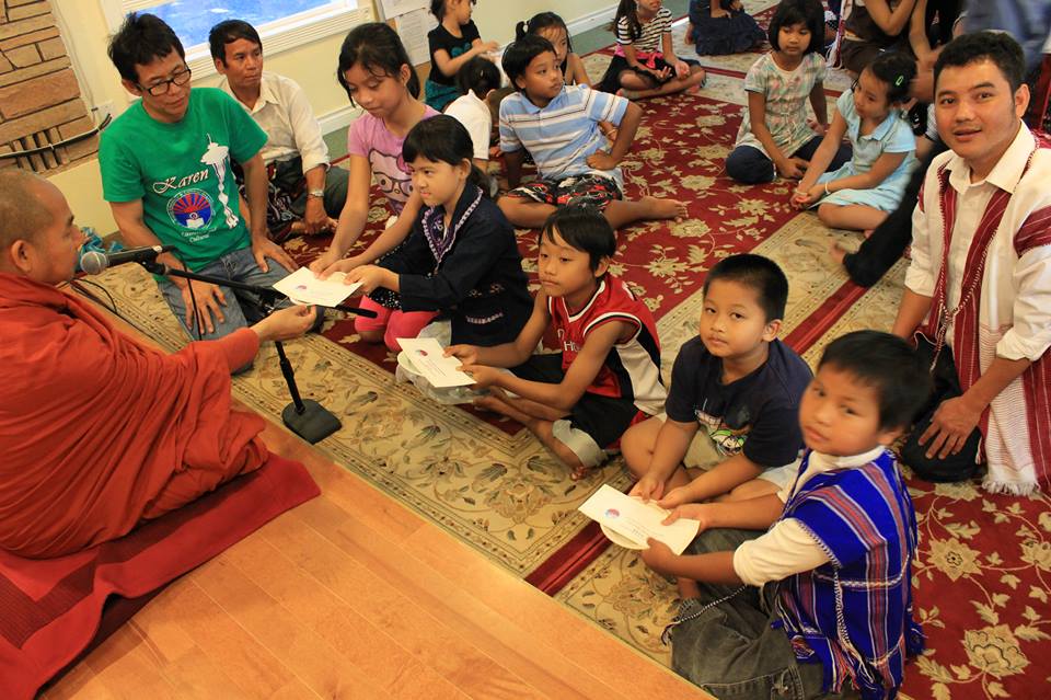 ေက်ာင္းထိုင္ဆရာေတာ္ အရွင္နႏၵသာရကို ေန ့ဆြမ္းကပ္လွဴျခင္း၊ စာသင္သား တိုင္းရင္သားကေလးငယ္မ်ားကိုေခါက္ဆြဲေၾကာ္နဲ ့အခ်ိဳရည္၊ သစ္သီးမ်ားျဖင့္ ေကြ်းေမြးျခင္းမ်ားျပဳလုပ္အၿပီးမွာ တရားနာ၊ ေရစက္ခ်၊နဝကမၼအလွဴ ေငြကပ္ျခင္းမ်ားလဲ ျပဳလုပ္ခဲ့ပါတယ္။ ကရင္စာေပႏွင့္ယဥ္ေက်းမႈအသင္းရဲ့ အလွဴေငြမ်ားအား စာသင္သားကေလးငယ္မ်ားကို စုေပါင္းကပ္လွဴေစခဲ့ပါတယ္။ “က်ေနာ္တို ့က ဘုန္းႀကီးေက်ာင္းမွာအလွဴပြဲလုပ္တိုင္း ကေလးငယ္ေတြကို ကပ္လွဴခိုင္းပါတယ္၊ ဒါဟာ သီလ သမာဓိရွိတဲ့ ဘုရားသားေတာ္ေတြကို၊ အတုမရွိ ဘုရားရွင္ေတာ္ကို ပစၥည္းေလးပါးနဲ ့ေထာက္ပံ့ သာသနာျပဳတတ္ဖို ့ ေလ့က်င့္သင္ၾကားေပးျခင္းပါပဲ၊ ကေလးငယ္မ်ားကိုလဲ ဘာအေၾကာင္း