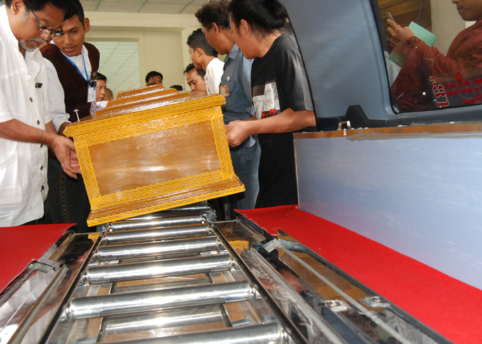 ဆရာေတာ္ႀကီး၏ တပည့္သံဃာေတာ္မ်ား၊ တပည့္ဒါယိကာ၊ ဒါယိကာမမ်ားႏွင့္ နာေရးကူညီမႈ အသင္း(ရန္ကုန္) အသင္းသားမ်ားတို႔သည္ ဆရာေတာ္ႀကီး၏ ႐ုပ္ကလာပ္အား ေရေဝးသုႆန္ခန္းမမွ တဆင့္ နာေရးကူညီမႈအသင္း(ရန္ကုန္) ဥကၠဌ ဦးေက်ာ္သူ နိဗၺာန္ယာဥ္ ကိုယ္တိုင္ေမာင္းႏွင္ၿပီး ေရေဝး သုႆန္႐ိွ အုတ္ဂူမ်ား႐ိွရာသို႔ ေမာင္းႏွင္ပင့္ေဆာင္ကာ ဂူသြင္းျခင္းအခမ္းအနားအား က်င္းပ ျပဳလုပ္ခဲ့ သည္။