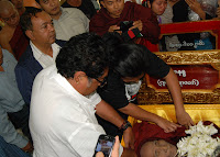 (၈) ေလးလံုးေန႔ဟူ၍ ျမန္မာႏိုင္ငံတြင္ စစ္အာဏာ႐ွင္တို႔အား ျပည္သူလူထုမွ တြန္းလွန္ခဲ့ရာတြင္ အမ်ားျပည္သူ ေက်ာင္းသားလူငယ္ ရဟန္းသံဃာတို႔ ေသြးေျမက်ခဲ့ရသည့္ ၾသဂုတ္လ၊ ျမန္မာႏိုင္ငံ အထင္ ကရ ႏိုင္ငံေရးသမားႀကီးမ်ား ေၾကြလြင့္သြားခဲ့ရသည္႔ ၾသဂုတ္လ၊ အထင္ကရ စာေပပညာ႐ွင္မ်ား ေပ်ာက္ ကြယ္သြားရသည့္ ၾသဂုတ္လ၊ ဂီတပညာ႐ွင္မ်ား၏သံစဥ္မ်ား ေမွးမွိန္သြားရသည္႔ ၾသဂုတ္လ၊ ႐ုပ္႐ွင္အႏု ပညာ႐ွင္မ်ား ပိတ္ကားထက္မွာ ေပ်ာက္ကြယ္သြားရသည့္ ၾသဂုတ္လ၊ သဘင္ပညာ႐ွင္မ်ား ဇာတ္ခံုထက္မွ လြင့္စင္သြားရေသာ ၾသဂုတ္လ၊ ၿငိမ္းခ်မ္းေရးဖခင္ႀကီး၏ ၿငိမ္းခ်မ္းေရးခ်ိဳးငွက္ငယ္ေလး အေဝးသို႔ ပ်ံသန္း ထြက္ခြာသြားေသာ ၾသဂုတ္လ၊ ထိုထိုေသာ နယ္ေျမအလႊာအသီးသီးမွ နည္းေပါင္းစံုတို႔ျဖင့္ ဘဝတစ္ပါးသို႔ ထြက္ခြာသြားရေသာ ၾသဂုတ္လတြင္ ဘဝေျပာင္းသြား႐ွာရေသာ သူရဲေကာင္းမ်ား၊ အာဇာနည္မ်ား၊ လူသား အက်ိဳးျပဳခဲ့ေသာ ပုဂၢိဳလ္ႀကီးမ်ား၊ အႏုပညာ႐ွင္မ်ား၊ ႏိုင္ငံေရးသမားႀကီးမ်ား၊ လူသားအက်ိဳးျပဳခဲ့ေသာ ပုဂၢိဳလ္ႀကီးမ်ား၊ အႏုပညာ႐ွင္မ်ား၊ ႏိုင္ငံေရးသမားႀကီးမ်ားတို႔၏ စ်ာပနအခမ္းအနားတို႔သည္ စည္ကား သိုက္ၿမိဳက္ေအာင္ျမင္စြာျဖင့္ ၿပီးဆံုးခဲ့ရေသာ္ျငားလည္း ယခုကဲ့သို႔ ဘာသာ၊ သာသနာႏွင့္ တိုင္းျပည္ႏွင့္ လူမ်ိဳးတို႔အေပၚ ေခတ္အဆက္ဆက္ ျဖတ္သန္းရင္း စြန္႔လႊတ္မႈမ်ားစြာျဖင့္ အနစ္နာခံ ေပးဆပ္ခဲ့ေသာ (ဂ်ပန္ဆရာေတာ္)ႀကီး၏ အႏၲိမအဂၢိစ်ာပန အခမ္းအနားသည္ကား တိတ္ဆိတ္ၿငိမ္သက္ ေအးခ်မ္းစြာ ၿပီးဆံုးသြားခဲ့ရသည္ကို သံေဝဂတရား ရင္နင့္စြာခံစားရမိကာ ဆရာေတာ္ႀကီး ဦးေမဓါနႏၵ (ဂ်ပန္ဆရာေတာ္ ႀကီး)သည္ ၿငိမ္သက္ေအးခ်မ္းေသာ အရပ္ေဒသတစ္ခု(သို႔) မဂ္ဖိုရ္နိဗၺာန္သို႔ အေရာက္လွမ္းႏိုင္လိမ့္မည္ဟု ယံုၾကည္မိပါေတာ့သည္။