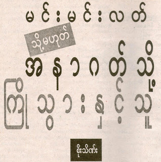 (အလကၤာ၊ အတြဲ (၃)၊ အမွတ္(၇)၊ ေဖေဖၚဝါရီ၊ ၁၉၉၈၊ တြင္ ပံုႏွိပ္ေဖာ္ျပခဲ့သည္။