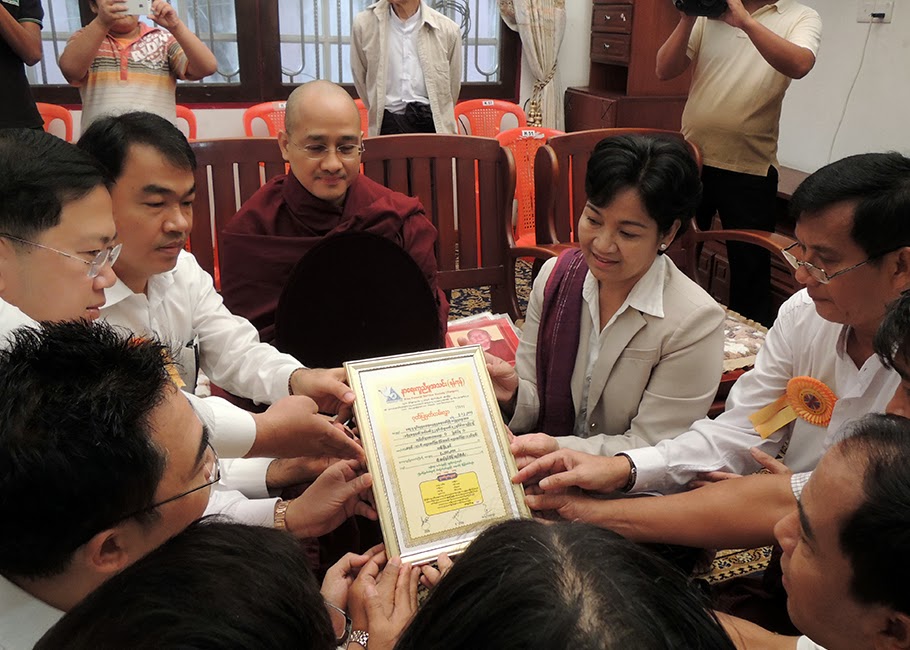 အႏိၲမအဂၢိစ်ာပန အခမ္းအနားျပဳလုပ္မည့္ ၉.၁၂.၂ဝ၁၃ ရက္ေန႔ နံနက္ (၆းဝဝ) နာရီအခ်ိန္တြင္ ေက်းဇူးေတာ္႐ွင္ ဓမၼာႏုပႆနာ ပခုကၠဴဆရာေတာ္ဘုရားႀကီး ဘဒၵႏၲဣေႏၵာဘာသ (အနိစၥဆရာေတာ္) သက္ေတာ္ (၉၂) ႏွစ္၊ သိကၡာေတာ္ (၇၂) ဝါ အားရည္စူး၍ က်န္ရစ္သူ တပည့္ဒါကာ၊ ဒါယိကာမမ်ားမွ နာေရးကူညီမႈအသင္း(ရန္ကုန္)သို႔ အလွဴေငြက်ပ္ (၉၂) သိန္းက်ပ္တိတိအား လွဴဒါန္းခဲ့ရာ နာေရးကူညီမႈ အသင္း(ရန္ကုန္) အတြင္းေရးမွဴး ေဒၚျမင့္ျမင့္ခင္ေဖ (ခ) ေဒၚေ႐ႊဇီးကြက္၊ အုပ္ခ်ဳပ္ေရးမွဴး ေဒၚဧရာေမာင္ ေမာင္ႏွင့္ အသင္းသူ/သားမ်ားတို႔မွ လက္ခံရယူခဲ့ၿပီး ဂုဏ္ျပဳမွတ္တမ္းလႊာအား ျပန္လည္ေပးအပ္ခဲ့သည္။