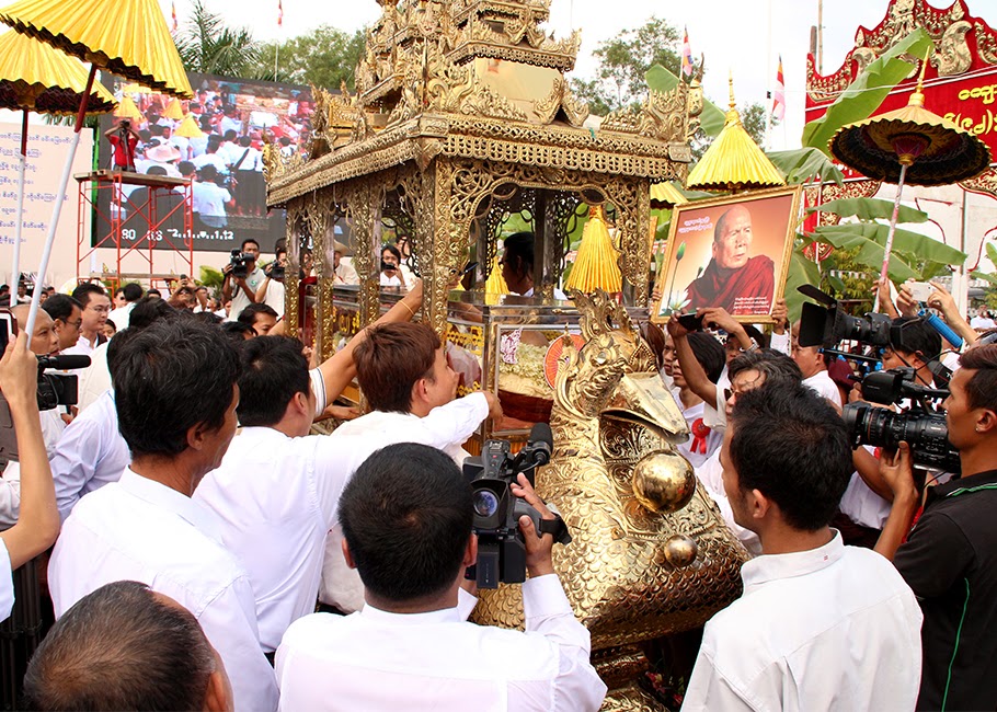 ဆရာေတာ္ဘုရားႀကီး၏ အႏၲိမအဂၢိစ်ာပနအား ၉.၁၂.၂ဝ၁၃ ရက္ေန႔ ညေန (၄းဝဝ) နာရီအခ်ိန္၌ ျပဳလုပ္က်င္းပမည္ျဖစ္သျဖင့္ နာေရးကူညီမႈအသင္း(ရန္ကုန္) ဥကၠဌ ဦးေက်ာ္သူ ကိုယ္တိုင္နိဗၺာန္ယာဥ္ ေမာင္းႏွင္ခဲ့ၿပီး “ေ႐ႊဂႏၳဝင္စံေက်ာင္းေတာ္”မွ ေန႔လည္ (၂းဝဝ) နာရီအခ်ိန္တြင္ နာေရးကူညီမႈအသင္း (ရန္ကုန္) အသင္းသားမ်ားတို႔မွ ဆရာေတာ္ႀကီး၏ ႐ုပ္ကလာဒ္ေတာ္အား မွန္ေခါင္းအတြင္းသို႔ စနစ္တက် ေျပာင္းေ႐ႊ႕၍ သံဃာေတာ္မ်ား၊ တပည့္ဒါယကာမ်ားတို႔မွ လက္ဆင့္ကမ္းပင့္ေဆာင္၍ နာေရးကူညီမႈ အသင္း(ရန္ကုန္) အသင္းသားမ်ားထံသို႔ ေပးအပ္ခဲ့ၿပီး နိဗၺာန္ယာဥ္ႀကီးျဖင့္ ေရေဝးသုႆန္သို႔ ပင့္ေဆာင္ ခဲ့သည္။ ညေန (၄းဝဝ) နာရီတြင္ ေရေဝးသုႆန္ မီးသၿဂႋဳဟ္စက္ အေ႐ွ႕ေမာ္ေတာ္ယာဥ္ရပ္နားသည့္ ေနရာတြင္ ျပဳလုပ္ထားေသာေလာင္တိုက္ျဖင့္ အႏၲိမအဂၢိစ်ာပနအား အစီအစဥ္တက် က်င္းပခဲ့ၿပီး ၁ဝ.၁၂. ၂ဝ၁၃ ရက္ေန႔ နံနက္ (၃းဝဝ) နာရီအခ်ိန္တြင္ ဆရာေတာ္ႀကီး၏ အ႐ိုးျပာမ်ားတို႔အား ေမာ္ေတာ္ယာဥ္ျဖင့္ “ေ႐ႊဂႏၳဝင္စံေက်ာင္းေတာ္” သို႔ အပူေဇာ္ခံထား႐ွိရန္ ျပန္လည္ပင့္ေဆာင္ခဲ့သည္။