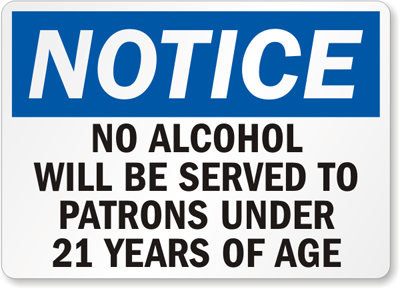 ဒီအသက္ကန္႕သတ္ခ်က္ဟာ ဥပေဒမို႕ ဒီဥပေဒကို ခ်ိဳးေဖာက္ရင္ အျပစ္ျဖစ္ပါတယ္၊ အေရးယူခံရပါမယ္၊ ဒါဏ္ေငြ ေဒၚလာ ငါးေထာင္ (သို႕မဟုတ္) ေထာင္ဒဏ္တစ္ႏွစ္အထိ က်ခံရႏိုင္ပါတယ္၊ဒါေၾကာင့္မို႕ အေမရိကန္ျပည္ေထာင္စုက အရက္ဆိုင္ေတြမွာ၊ စားေသာက္ဆိုင္ေတြမွာ “အသက္ ၂၁ႏွစ္မျပည့္ရင္ အရက္မေရာင္းပါ” လို႕ အတိအလင္း ေၾကညာထားၾကသလို အရက္ဝယ္ယူသူကိုလည္း အသက္ျပည့္မျပည့္စစ္ဖို႕ မွတ္ပံုတင္ေတာင္းယူ စစ္ေဆးၾကပါတယ္၊