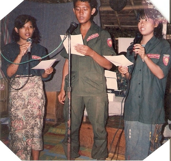 Other popular songs were old patriotic jingles from World War II and the independence movement, while the famous Kachin singer Dennis Mun Awng’s songs about more contemporary subjects were also well-liked, especially among the young. Born in Kachin State in 1960, Mun Awng first became popular in the 1980s. He joined the August 1988 uprising and was among those thousands of dissidents who fled to the Thai-Burmese border after the crackdown on September 18 and the formation of the State Law and Order Restoration Council, SLORC. Five years later, in 1993, he arrived in Norway to begin working for the DVB.